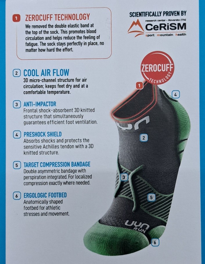 - UYN One Zerocuff Fachhandelsware mit speziellen druckfrei weich auslaufenden Sportbündchen