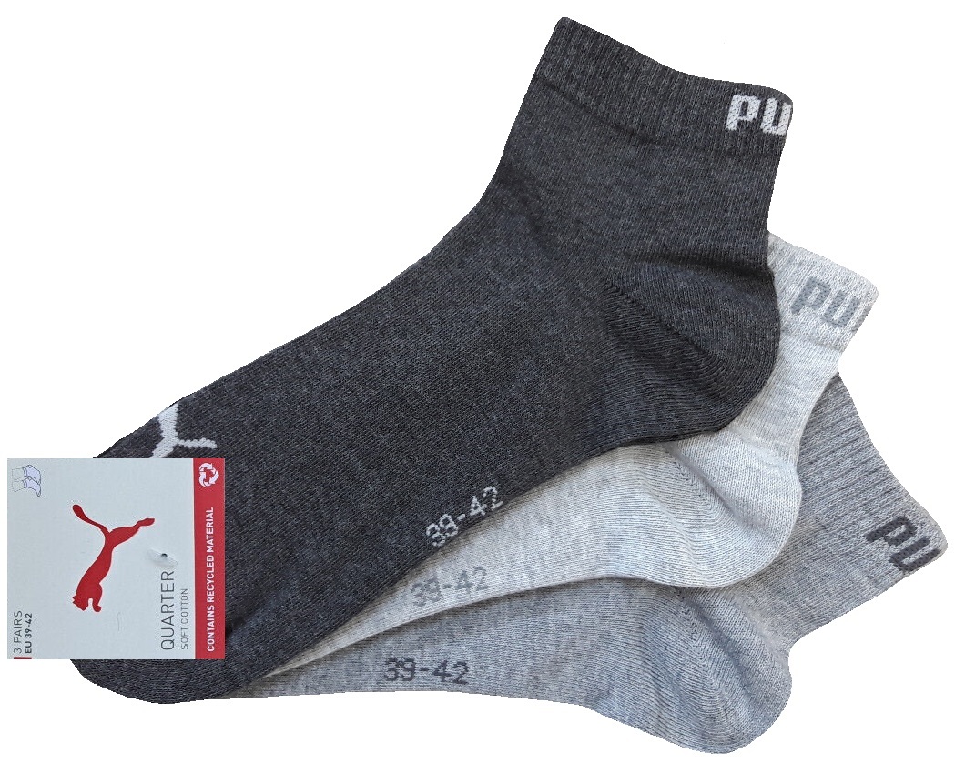 3 Paar Puma Baumwoll Klassik Quarter - Farbset: Mix Grautöne