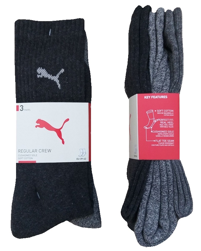 3 Paar Puma Tennissocken - Klassik Crew Form (Normallang) - Farbset: Mix Grautöne