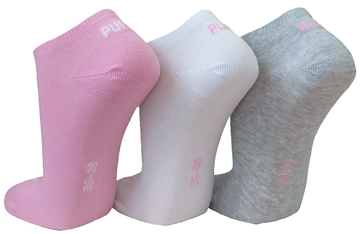 3 Paar Puma Basic Unisex Sneaker Füßlinge - Farbset: Mix mit Rosa/Grau...